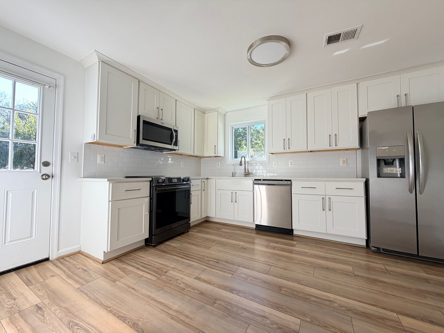 Available now! This beautifully updated three-level townhome offering 4-5 bedrooms, 3.5 bathrooms, and 2,072 square feet of modern living space. Freshly painted and featuring sleek luxury vinyl flooring throughout, this home is move-in ready. The kitchen is equipped with stainless steel appliances and ample cabinet storage and includes convenient access to a small deck and a fully fenced rear yard. With newly renovated bathrooms and vanities, this residence perfectly combines style and functionality. Don't miss this opportunity schedule your viewing today